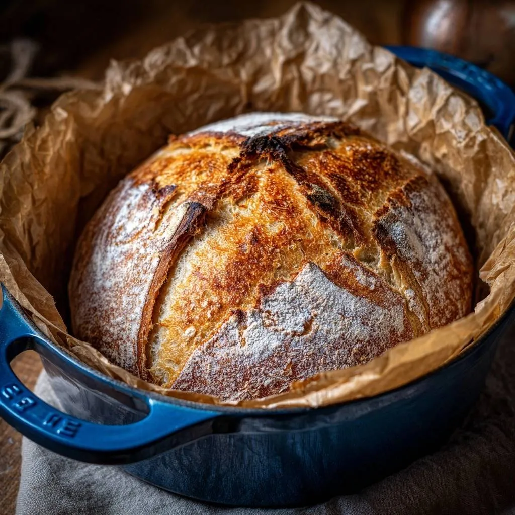 Homemade bread with a soft, pale crust drives you crazy? This 4-ingredient no-knead recipe changes everything. You get bakery-crisp crust without kneading or fancy gear. Just mix, wait, and bake in your Dutch oven for pro results that crackle under your knife.
