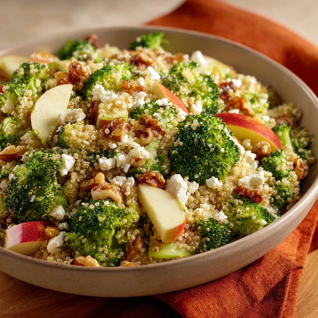 Packed with protein-rich quinoa, fiber from crisp broccoli, and sweet notes from fresh apple, this salad offers incredible nutrition.
