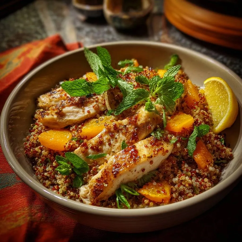 Serve immediately so quinoa stays fluffy and chicken hot. The visual pop of colors makes it Instagram-worthy without trying. Enjoy the sweet-tart harmony in every Apricot Mint Chicken Quinoa Bowl bite.
