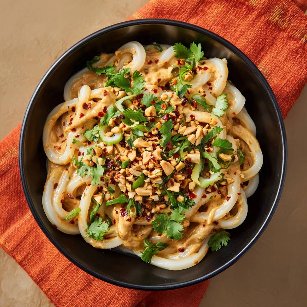 Learn the secret to restaurant-quality udon with this creamy peanut sauce recipe that uses a cold-rinse technique to prevent gummy and sticky noodles.