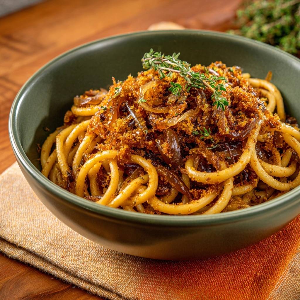 Learn the secret to restaurant-quality pasta with this Caramelized Onion Bucatini. Uses a starch-emulsion technique to create a silky, glossy sauce without heavy cream.