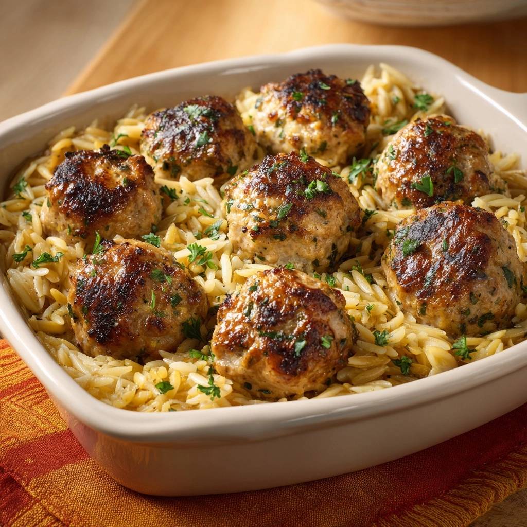 Learn the Toast and Absorb method to create a perfect meatball and orzo bake with distinct, al dente pasta and juicy seared meatballs.