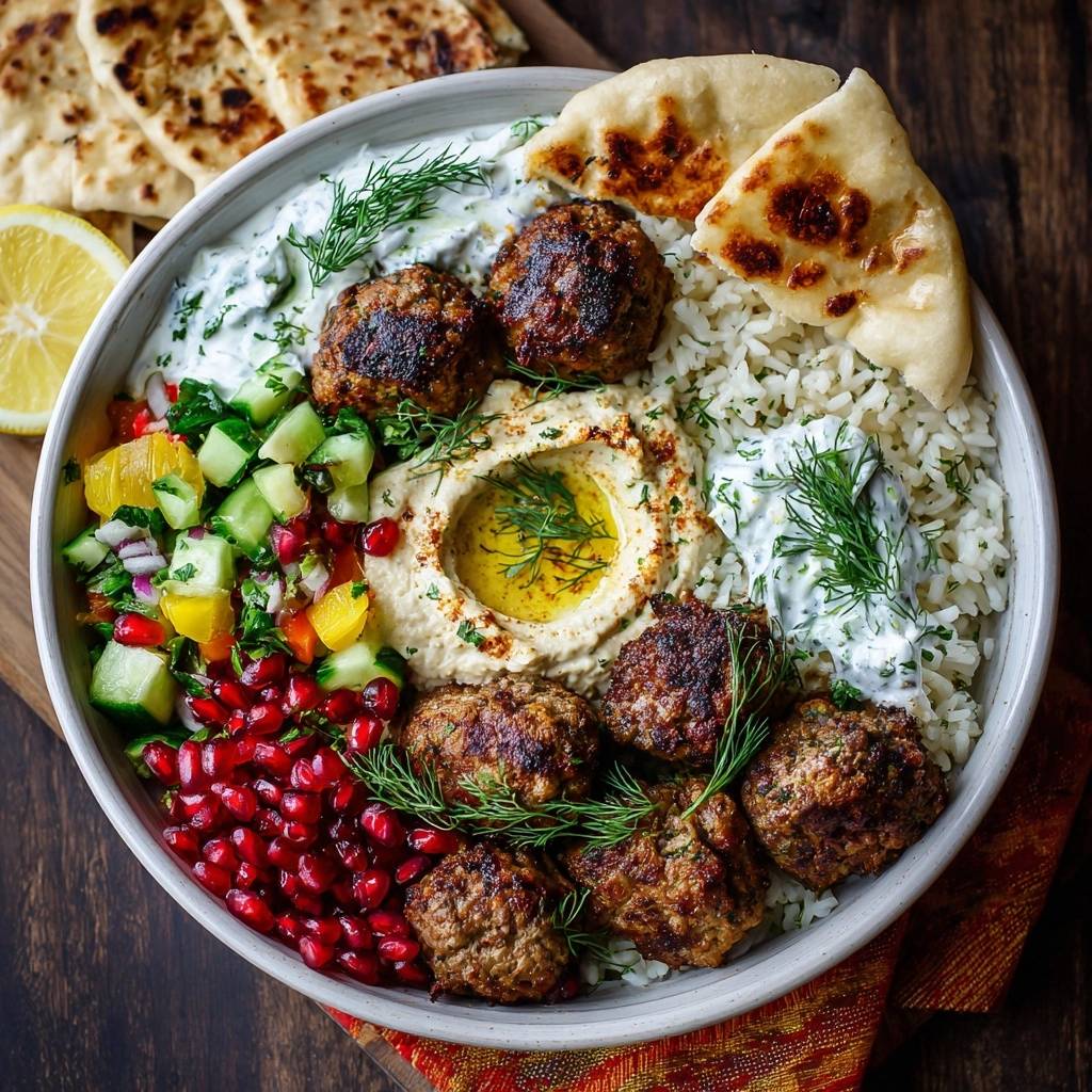 Learn the secret to never-dry meatballs using the panade method. These Mediterranean Beef Meatball Bowls feature juicy beef, herb rice, hummus, and fresh pomegranate.