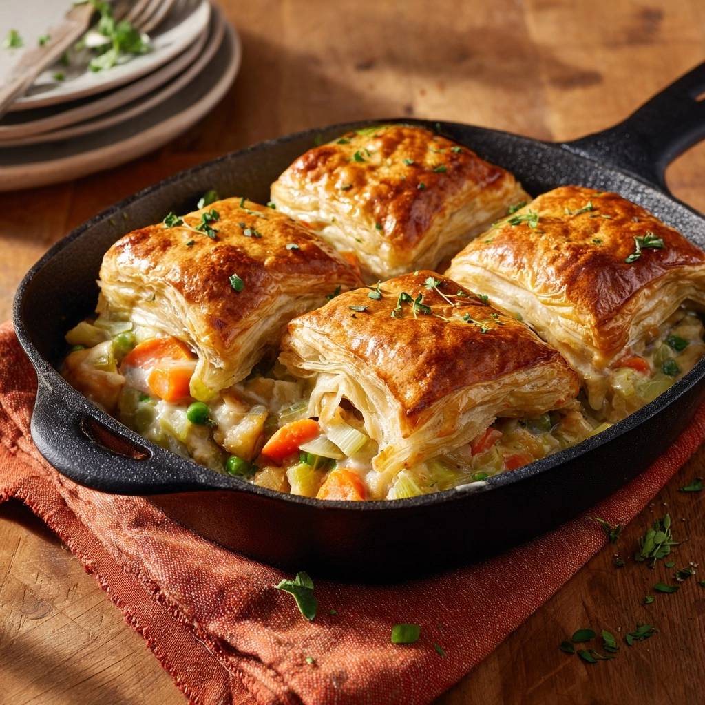 A revolutionary skillet chicken pot pie method that uses a high-heat puff pastry technique to ensure a shatteringly crisp crust and eliminate soggy bottoms.