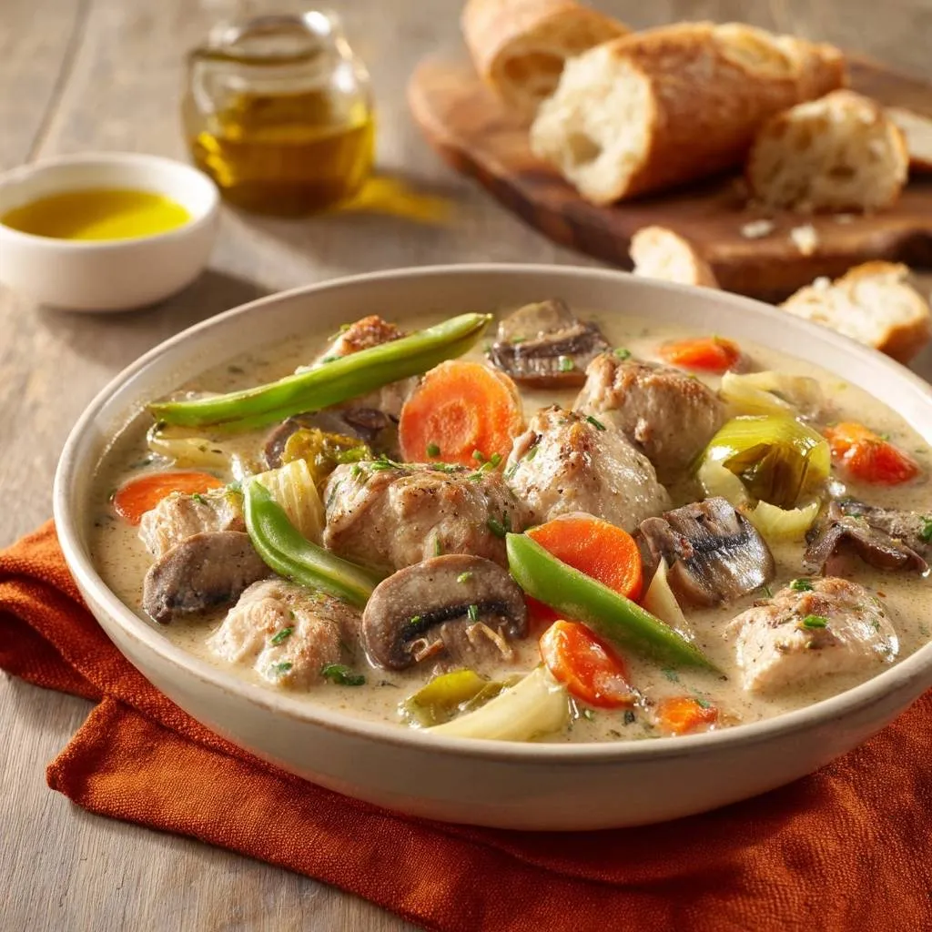 A rich and velvety chicken stew featuring a foolproof roux technique to ensure a thick, hearty sauce that never turns out watery.