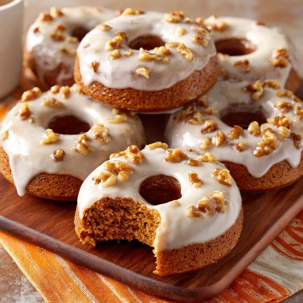 Learn the secret to light, airy baked pumpkin donuts with a thick maple-vanilla glaze and toasted walnuts. No more dense, muffin-like textures!