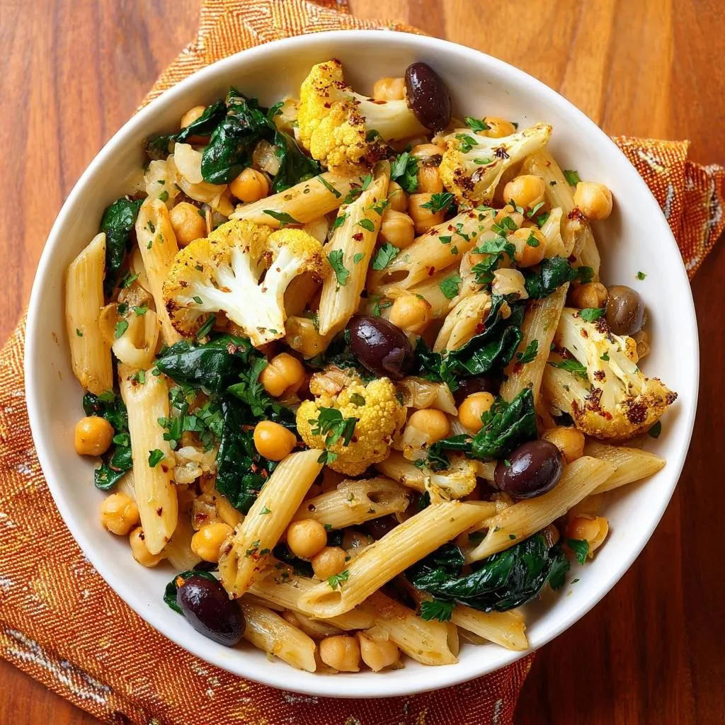 Learn how to make restaurant-quality pasta with charred cauliflower and crispy chickpeas using a high-heat roasting technique and a starchy water emulsion.