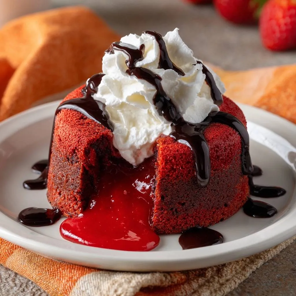 A foolproof red velvet lava cake recipe featuring a chilled white chocolate ganache core to ensure a perfect, vibrant molten center every time.