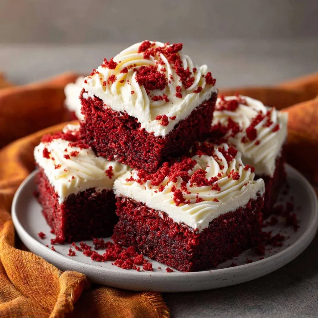A moist and tender red velvet sheet cake featuring a secret buttermilk and vinegar ratio to prevent dryness, topped with fluffy cream cheese frosting.