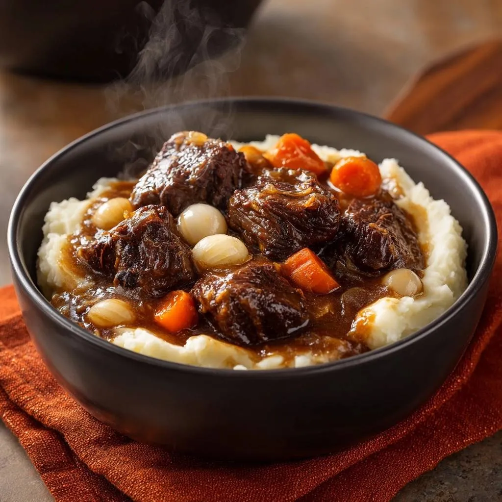 Master the art of fork-tender beef with this low and slow braising method. Features a rich, dark gravy and perfectly glazed carrots served over creamy mashed potatoes.