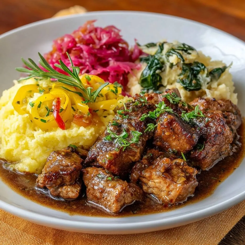 Learn the secret to melt-in-your-mouth beef tips with this slow-braised recipe served over rich, buttery Parmesan polenta.