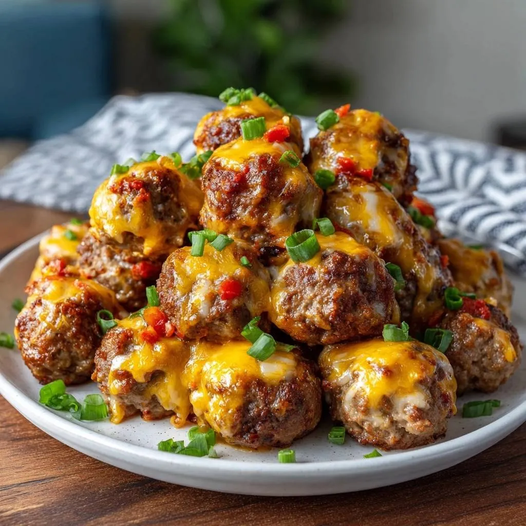 Learn how to make juicy, never-dry beef meatballs using a panade secret, topped with melted cheddar, Monterey Jack, and fresh green onions.