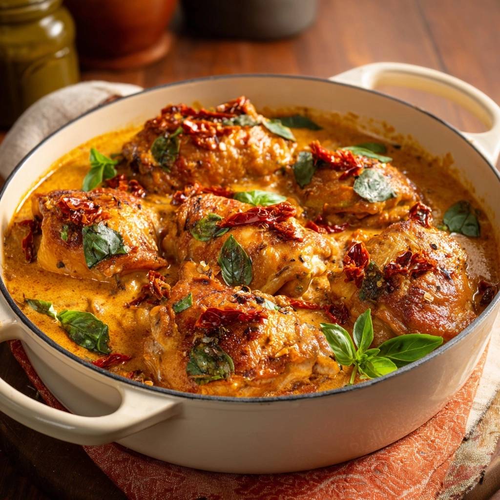 Learn how to make restaurant-quality Creamy Sun-Dried Tomato Chicken Thighs with a stable, velvety sauce that never turns watery using a professional reduction technique.