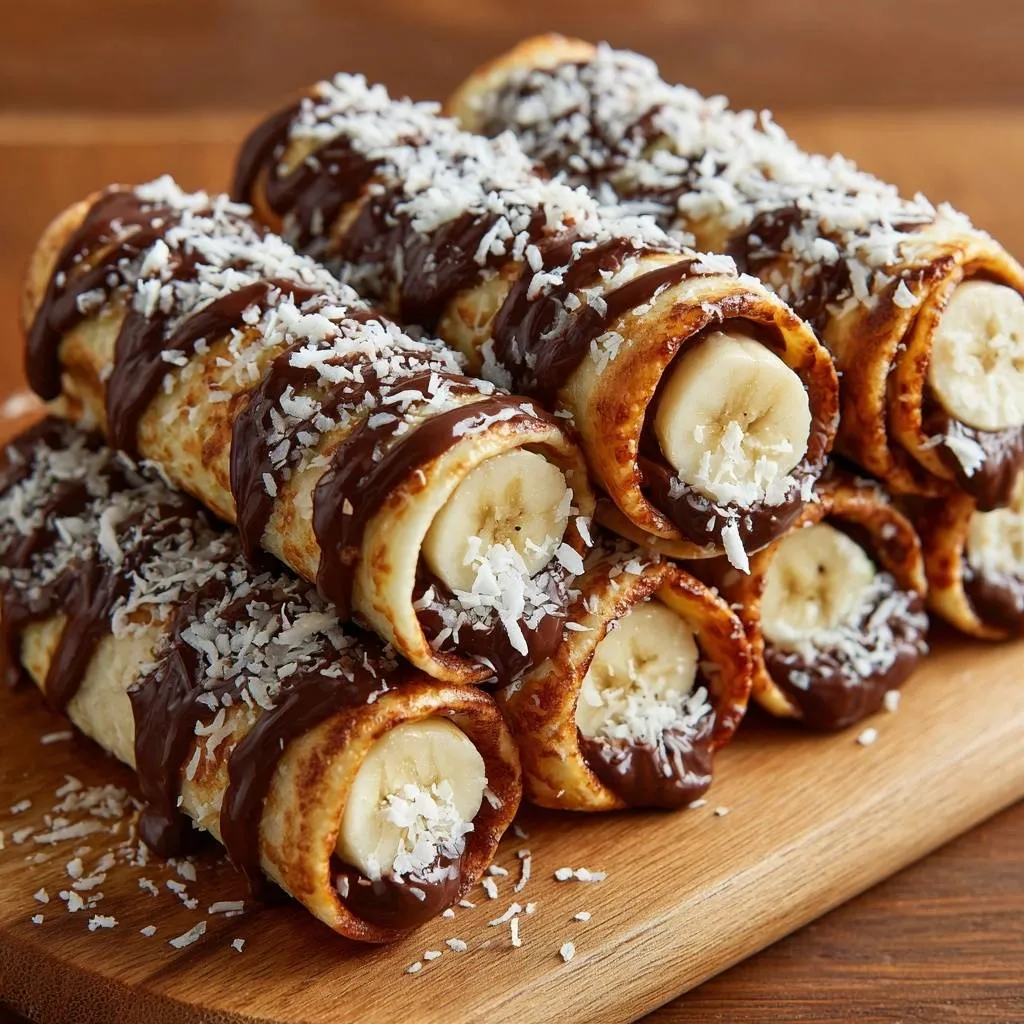 Foolproof crepes filled with ripe bananas, drizzled with melted chocolate, and topped with toasted coconut for a tropical treat without tears.