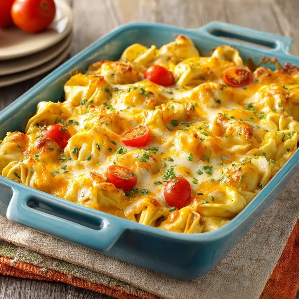 Foolproof cheesy tortellini bake with a tomato prep trick that drains excess moisture for a thick, bubbly, restaurant-worthy result without sogginess.