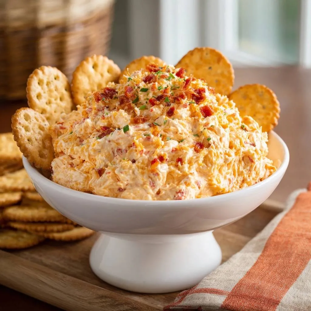 Creamy, dippable bacon pimento cheese dip made with whipped cream cheese base for perfect moisture. No more dry pimento cheese!