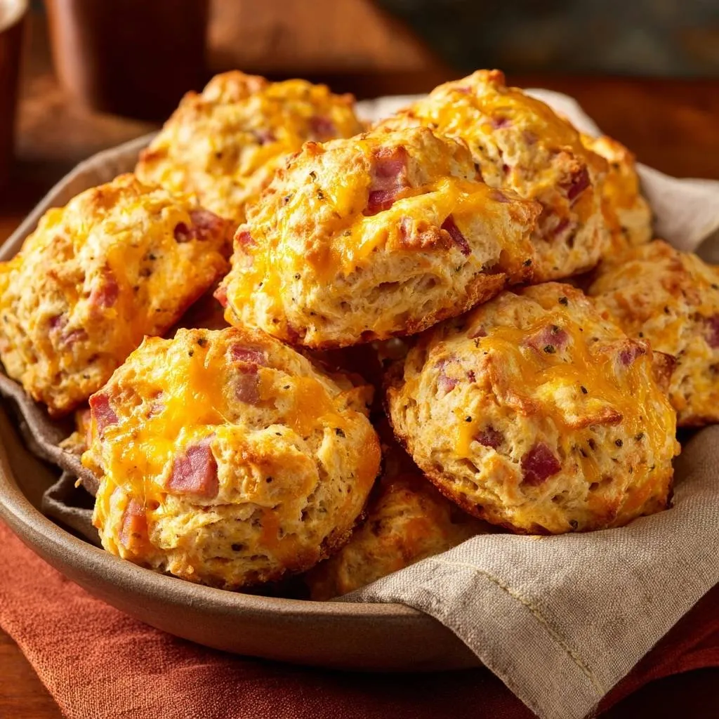 Ham and Cheddar Biscuits with Flaky Layers