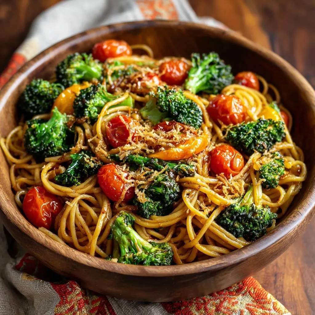 Foolproof crispy garlic shards with blistered tomatoes and crisp broccoli tossed in pasta. No more scorched garlic!
