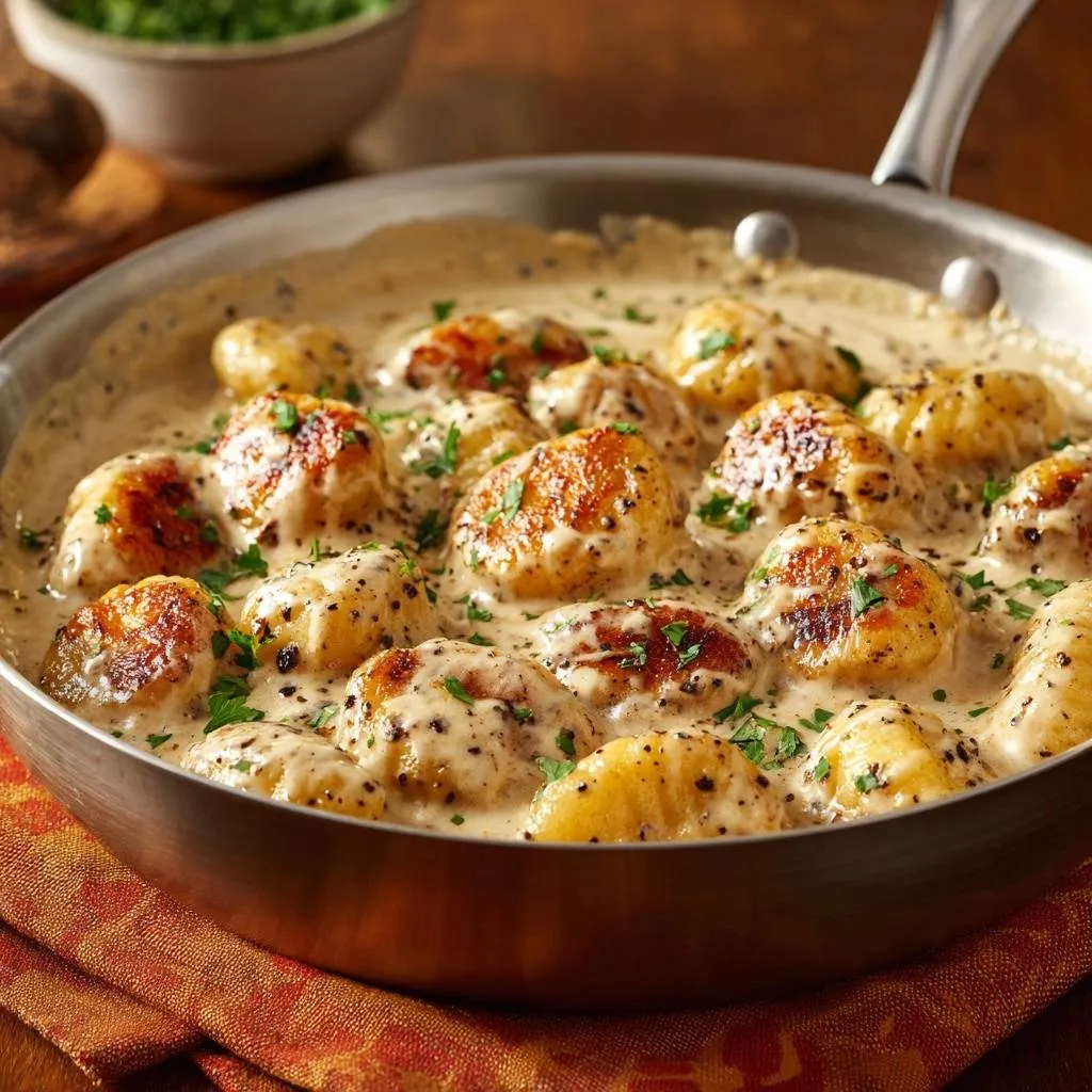 Crispy pan-seared gnocchi in a creamy pepper sauce. Perfect fluffy texture, no gumminess, ready in under 20 minutes!