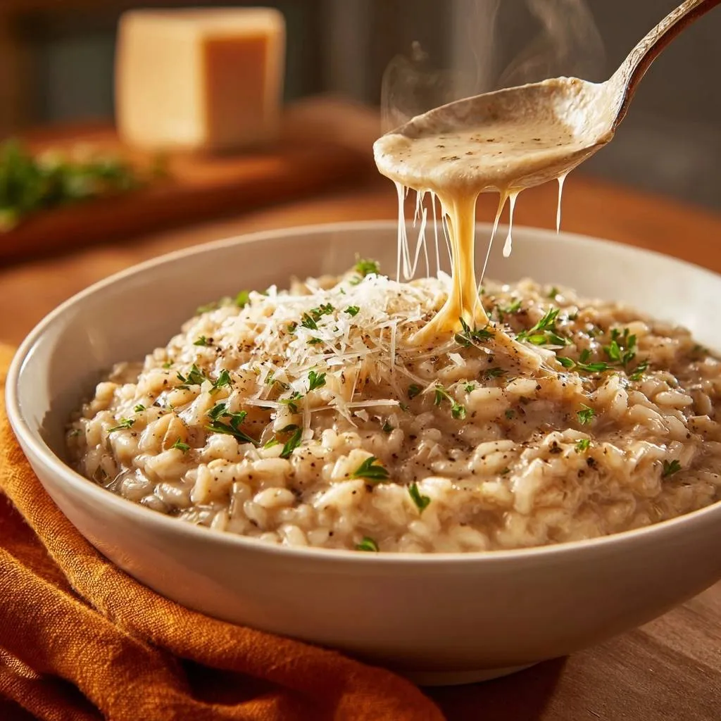 Master perfect creamy Parmesan risotto without gluey texture using hot broth added one ladle at a time for even starch release.