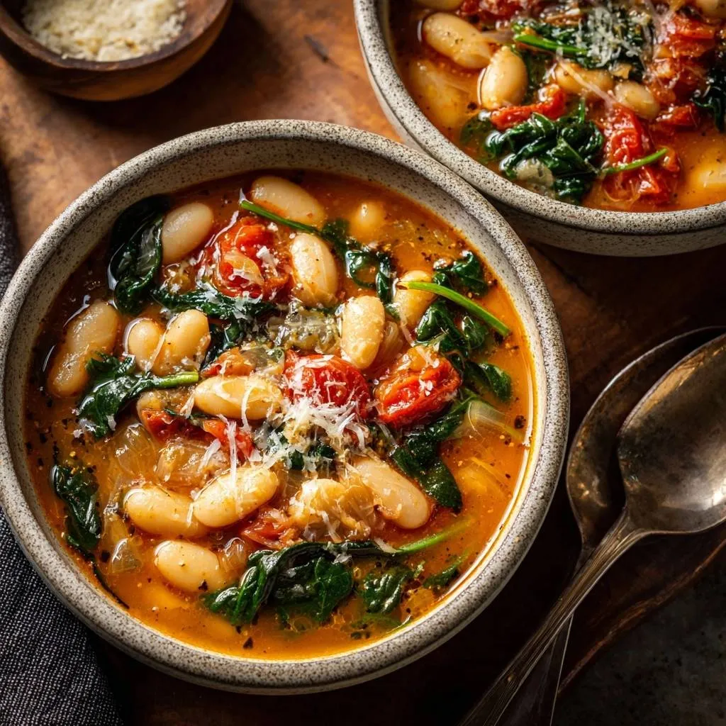 Creamy white bean spinach soup thickened naturally by smashing beans, with sun-dried tomatoes and Parmesan. Ready in under 40 minutes, no cream needed.
