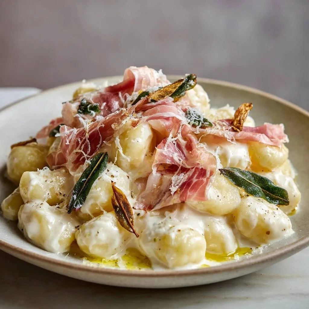 Perfect pillowy gnocchi with crispy prosciutto and sage in a creamy Parmesan sauce. No more gummy gnocchi thanks to the boil-and-pan-toss method.