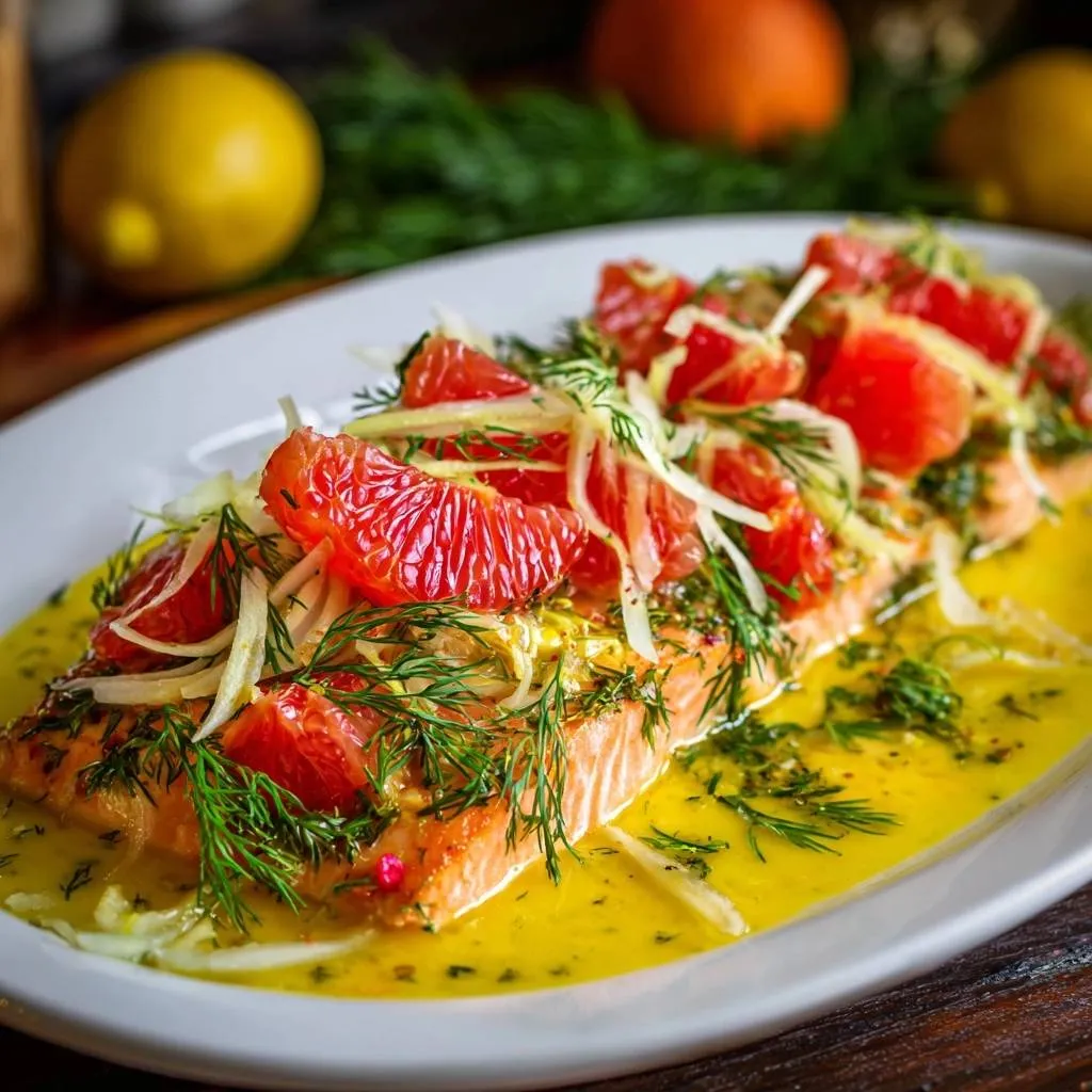 Foolproof low-temperature baked salmon with juicy grapefruit segments and shaved fennel for perfect moist tenderness every time.