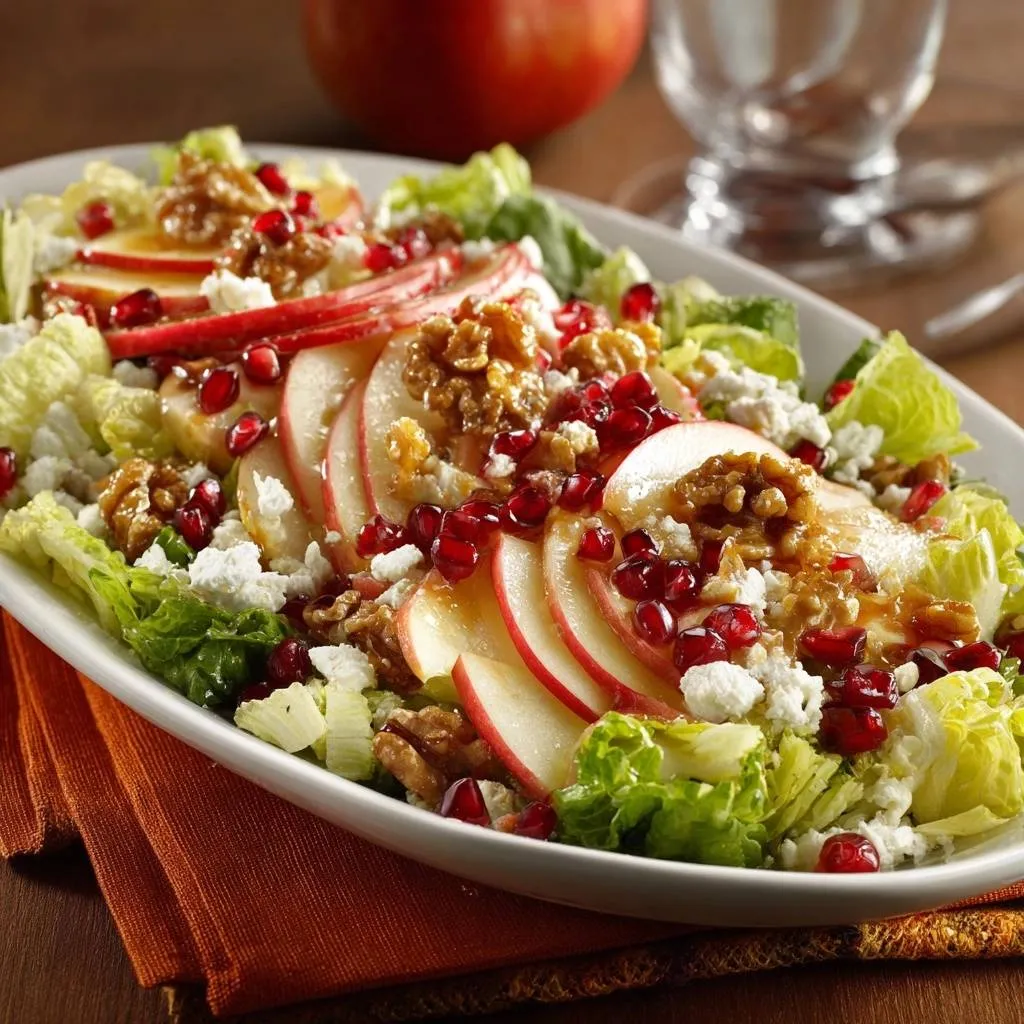 Foolproof apple salad with pomegranate, feta, and walnuts. Glaze trick keeps apples crisp and white, preventing browning. Perfect fall crunch!