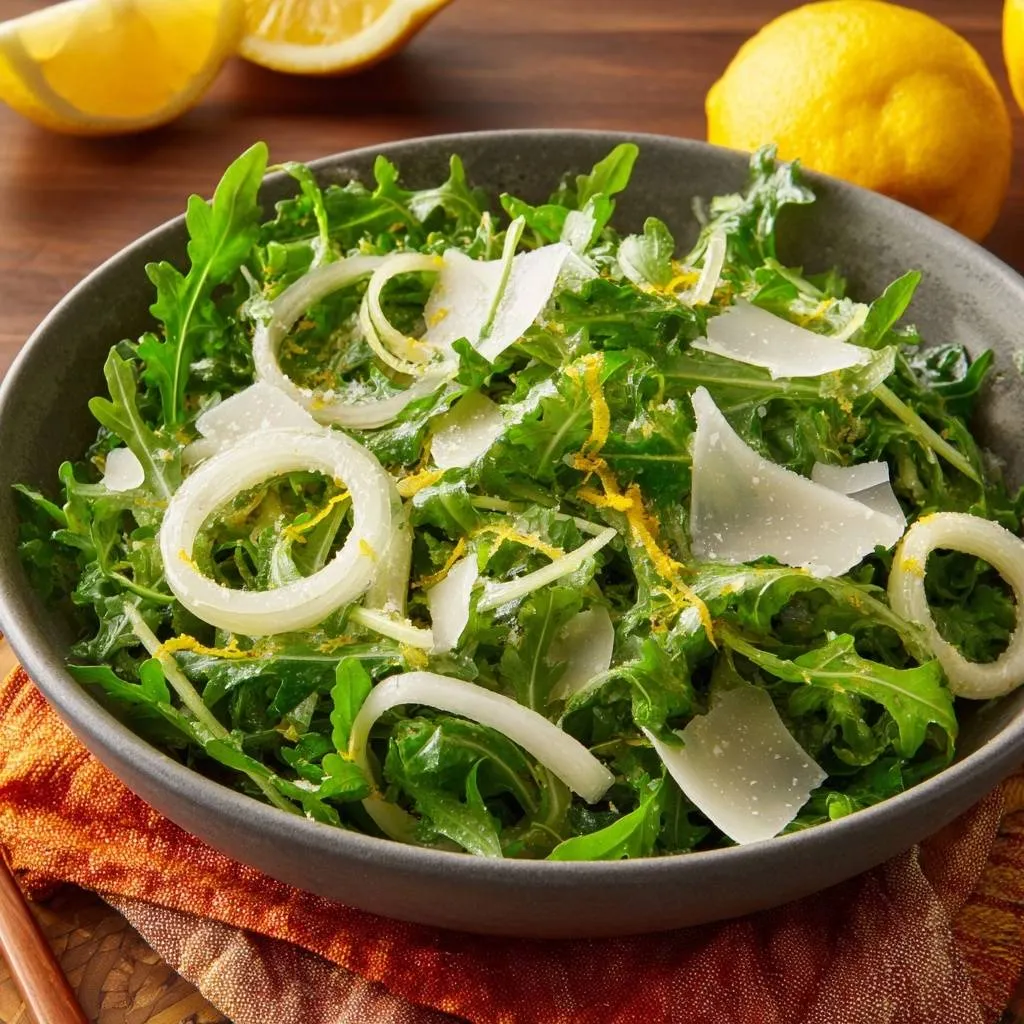 A refreshing 10-minute salad with peppery arugula, zesty lemon, nutty Parmesan, and crisp mild onions soaked in ice water to remove harsh bite.