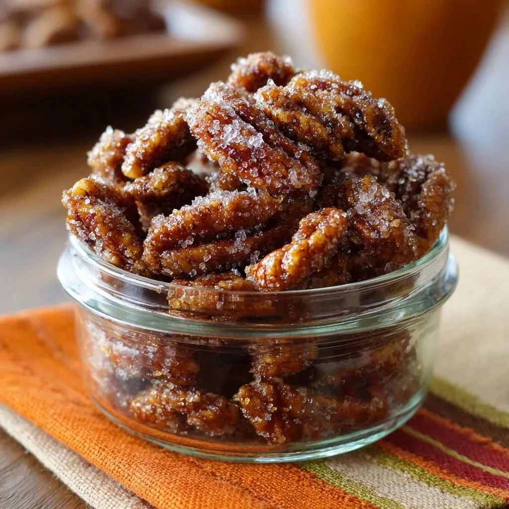 Perfect individual crunchy candied pecans with a sparkling sugar shell. Stovetop recipe using a secret off-heat stirring technique for zero sticky clumps.