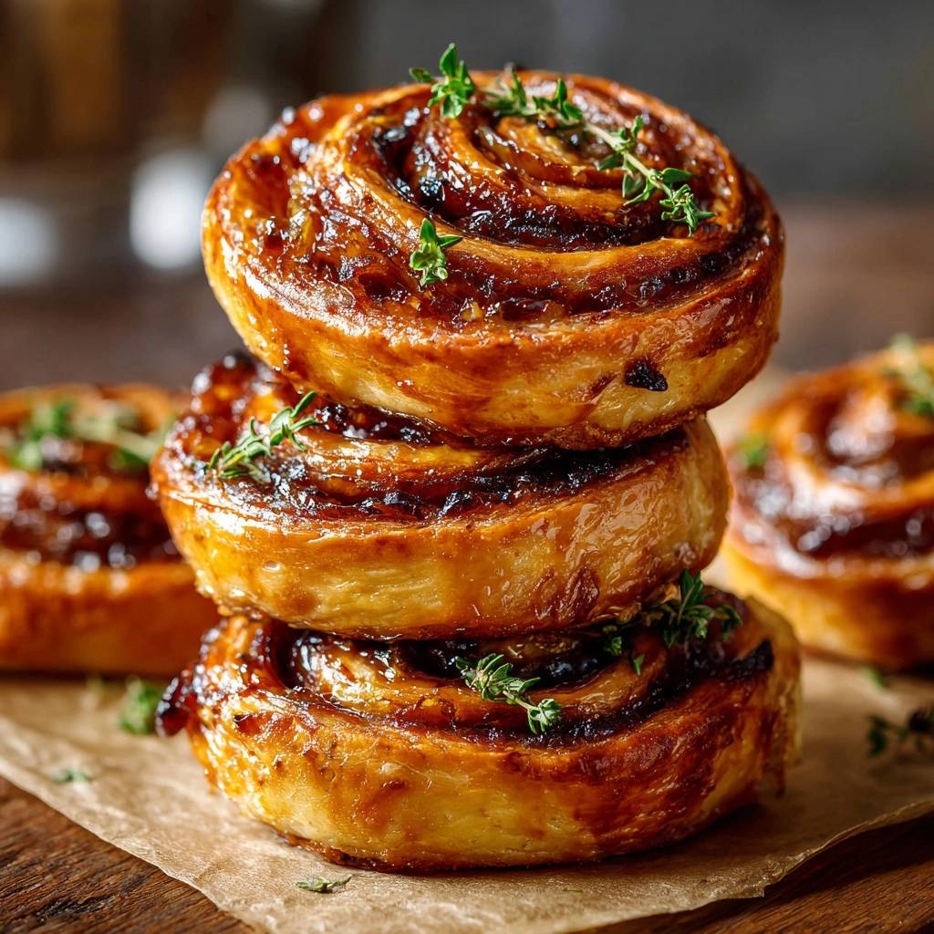 Learn the secret to perfectly crisp, never-soggy puff pastry swirls featuring deeply caramelized onions, melted Gruyere cheese, and a hint of balsamic glaze.