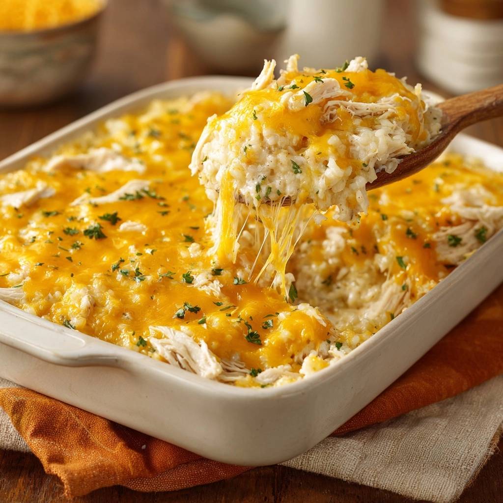 A foolproof chicken and rice casserole that uses a specific layering technique to ensure perfectly tender rice and juicy chicken under a gooey cheddar crust.