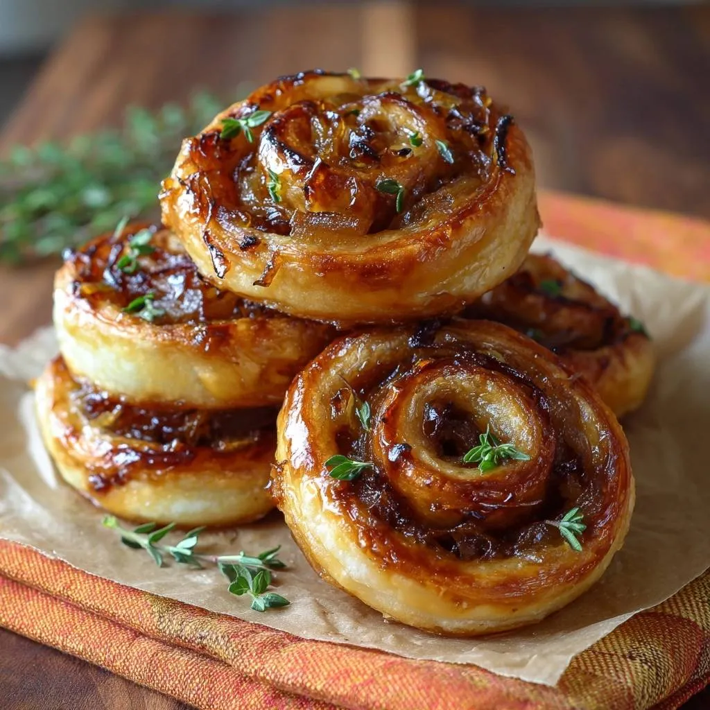 Crispy, flaky puff pastry spirals with jammy caramelized onions. Double-dry method prevents sogginess for perfect results every time.