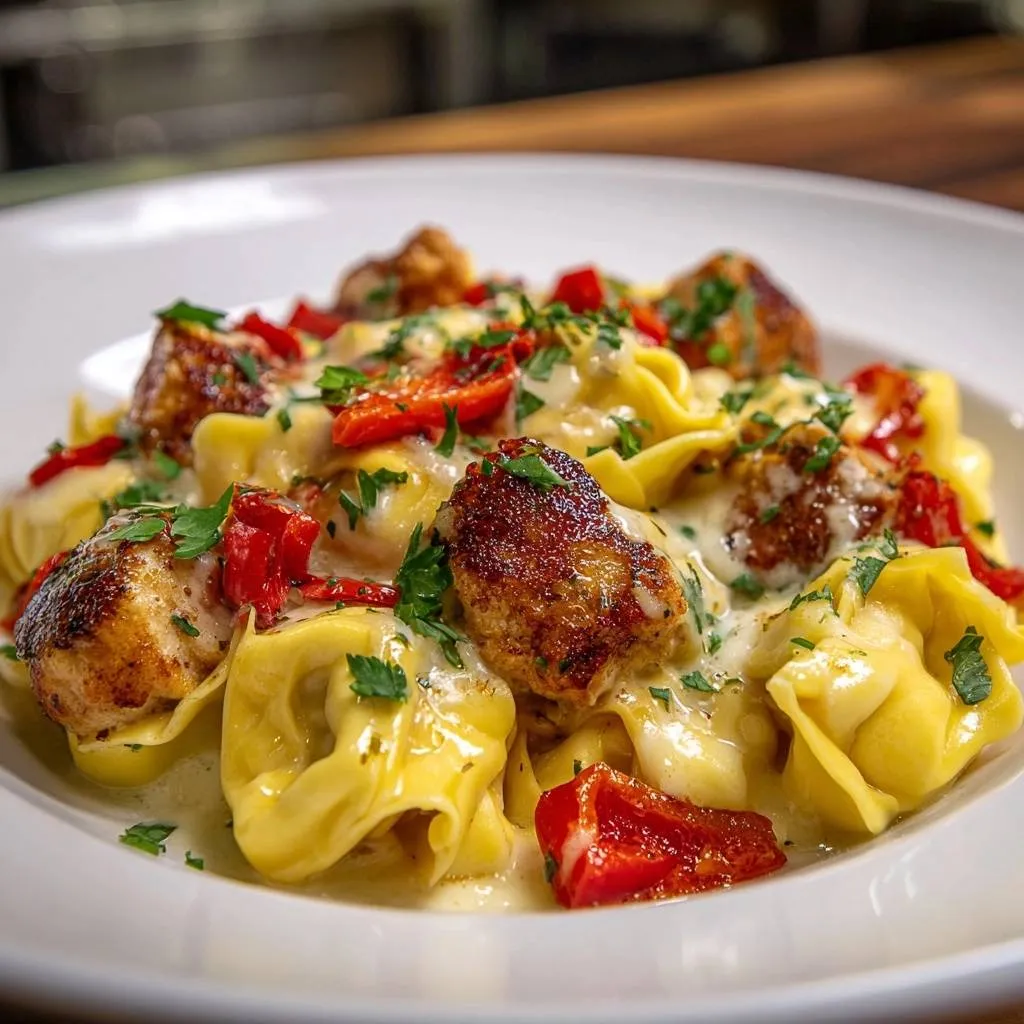 Creamy Chicken Meatball Tortellini with Roasted Red Peppers