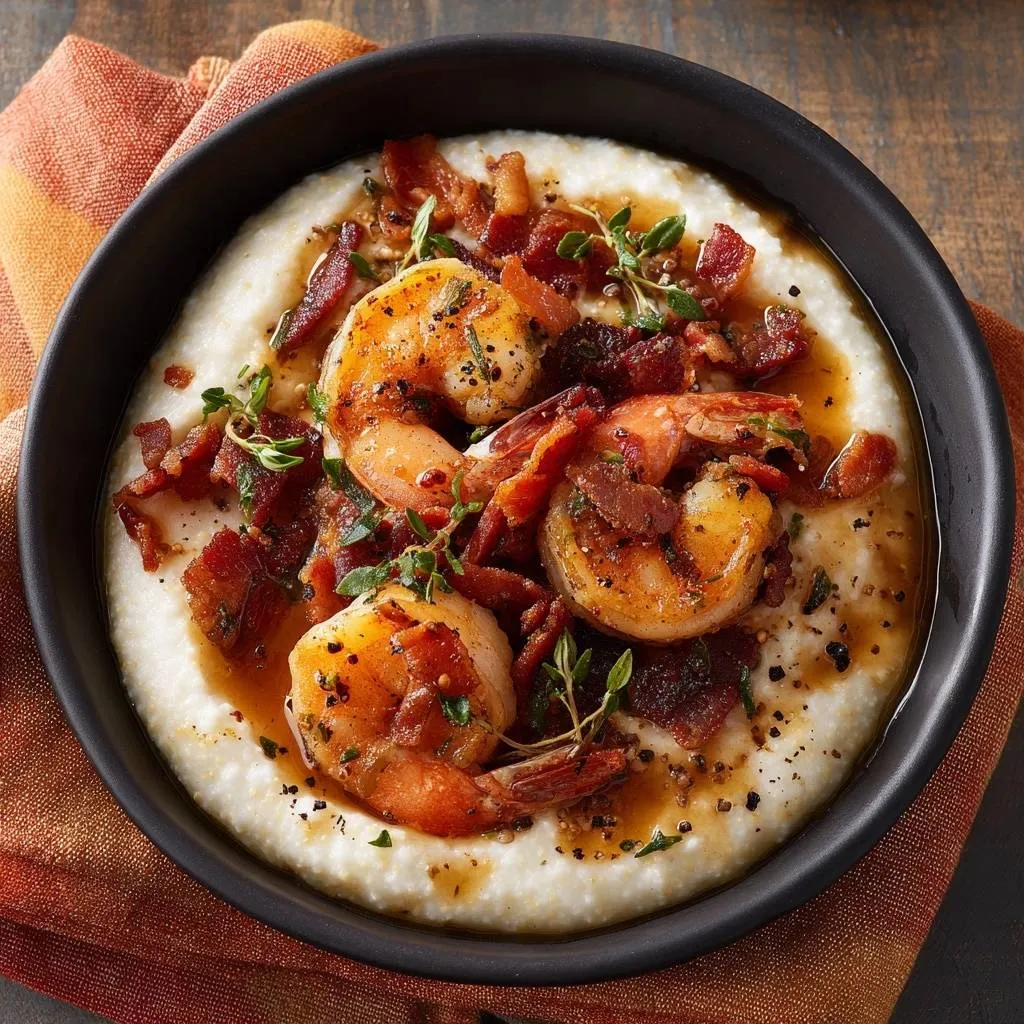 Ultra-smooth creamy grits with juicy shrimp and crispy bacon. Master the no-lumps trick for perfect Southern comfort food.