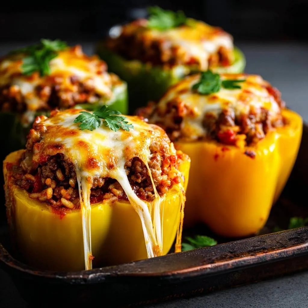Perfect stuffed peppers with juicy beef-rice filling and gooey cheese. Pre-steam trick prevents sogginess for tender, firm peppers.