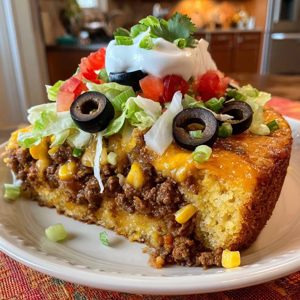 A delicious taco casserole featuring a par-baked cornbread base and a moisture-lock cheese layer to prevent sogginess.