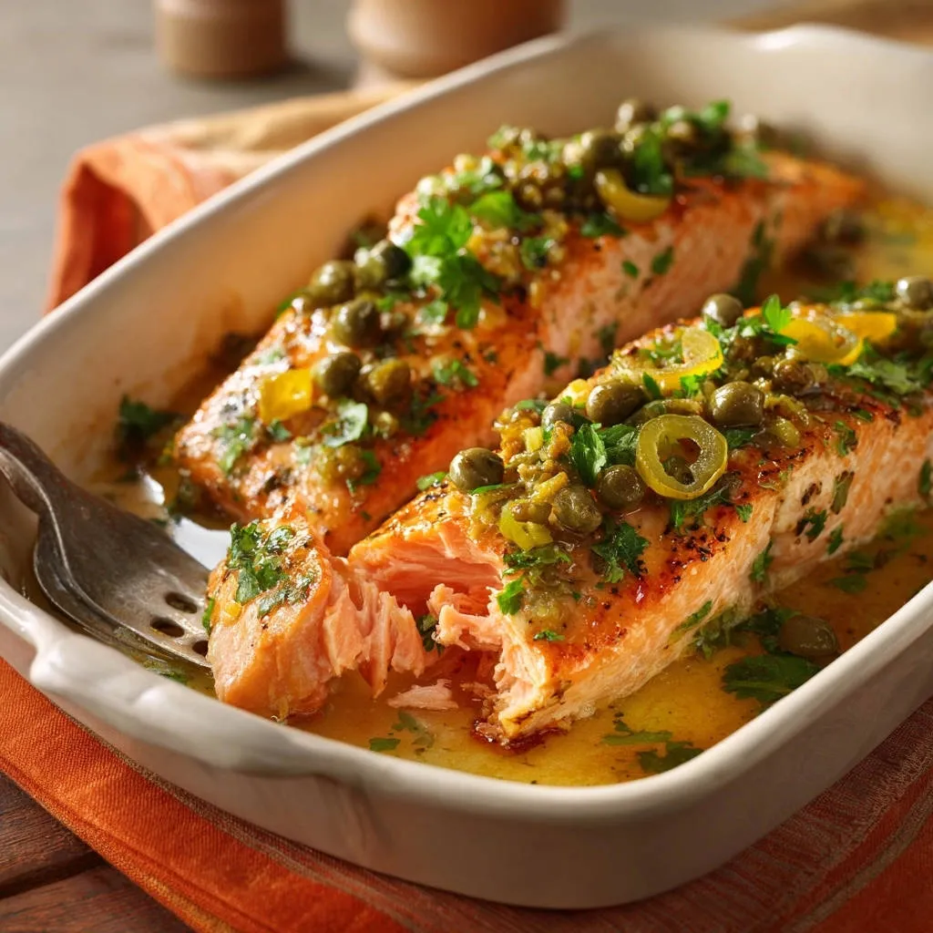 - Once baked, remove the dish from the oven. Let the salmon rest in the baking dish for 2 to 3 minutes before serving. This allows the juices to redistribute, ensuring maximum moisture and that perfect flaky texture. Spoon any additional remaining caper-olive topping and pan juices over the salmon just before serving.