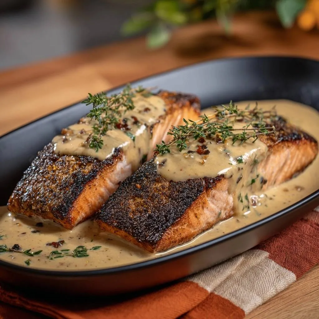Picture this: that flaky, charred crust on salmon that snaps under your fork, with juices locked in tight. No more dry, disappointing fillets. This blackened salmon with creamy thyme sauce nails it in just 20 minutes for 2 servings, clocking in at about 550 calories per serving.