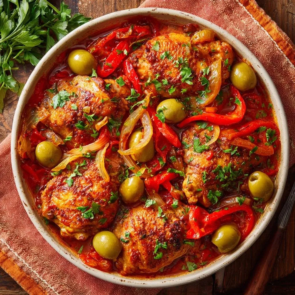 Flavor Twists on Braised Chicken with Peppers and Olives