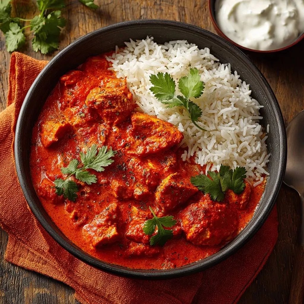 Therefore, you get chicken so juicy it practically melts in the sauce. Picture creamy tomato gravy clinging to tender bites, spooned over fluffy basmati rice with cooling raita on the side. Oh man, that first bite hits with warm spices and silky richness. It’s comfort food that doesn’t fight back.
