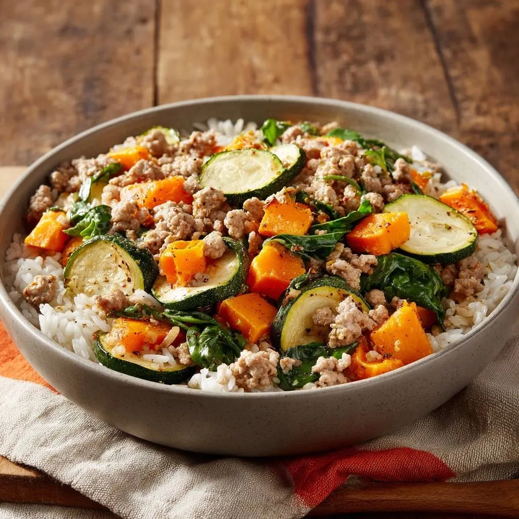 Butternut Zucchini Turkey Rice Bowl