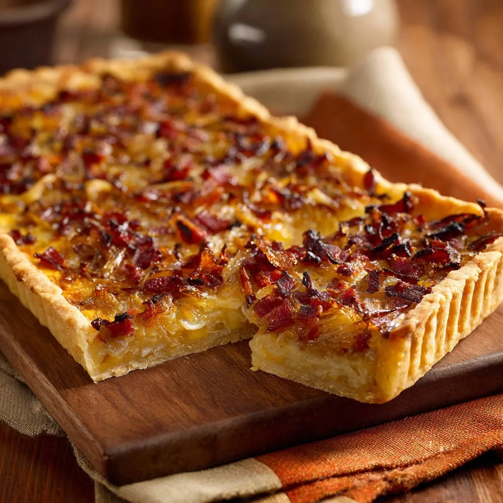 Each bite offers a beautiful interplay of flavors and textures. The deep sweetness of slowly caramelized onions balances the rich, creamy custard, all nestled in a flaky crust with a hint of nutty Gruyere cheese.