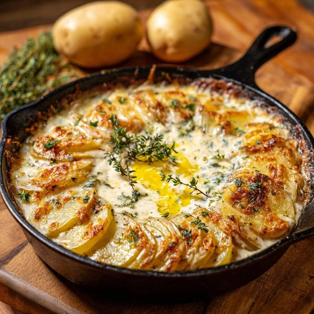 Picture this: that perfect bite where creamy potatoes melt against a shatteringly crisp top, all without a hint of sogginess. You’ve probably battled watery gratins before, where layers turn to mush because excess moisture ruins everything. This cast iron skillet version fixes it with one game-changing step.