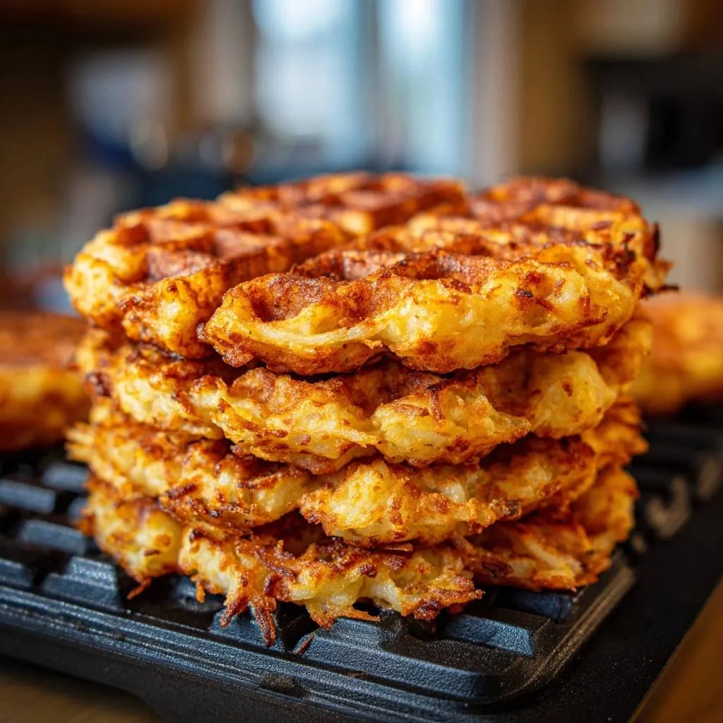 Learn the secret to perfectly crispy, non-soggy hash brown waffles using a drying technique and a waffle iron for a golden crunch.