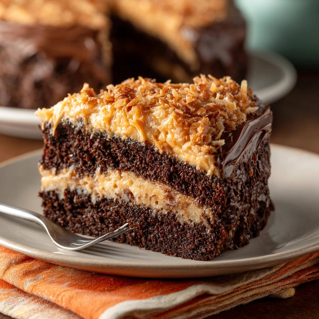Make the best Classic German Chocolate Cake that’s perfectly moist every time! This recipe features a tender chocolate cake and sweet coconut pecan frosting.