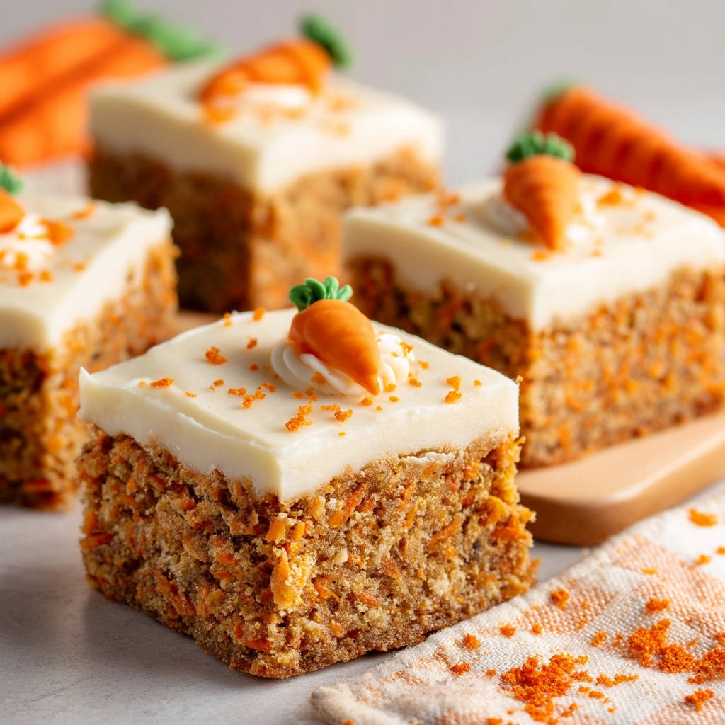 Easy Carrot Cake Squares recipe with a special trick for a light, moist cake. Perfect for potlucks & bake sales! Get the recipe now!