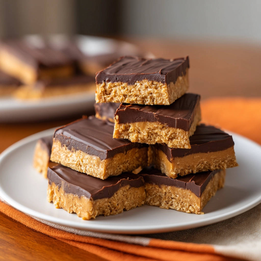 Easy Peanut Butter Chocolate Bars recipe with NO cracking! Get perfectly smooth chocolate topping every time. Simple ingredients, delicious results!