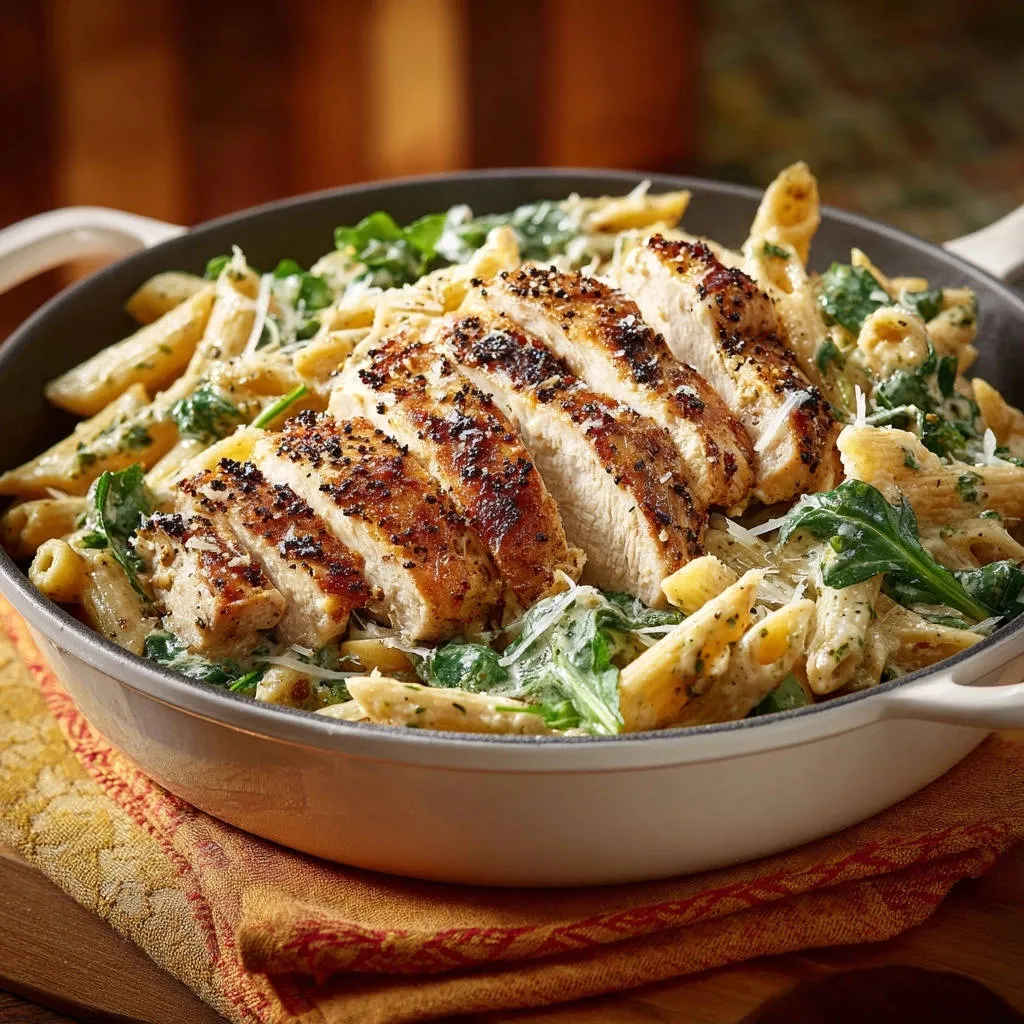 Perfect the technique for incredibly juicy chicken paired with a rich, creamy penne pasta sauce for an easy weeknight meal.