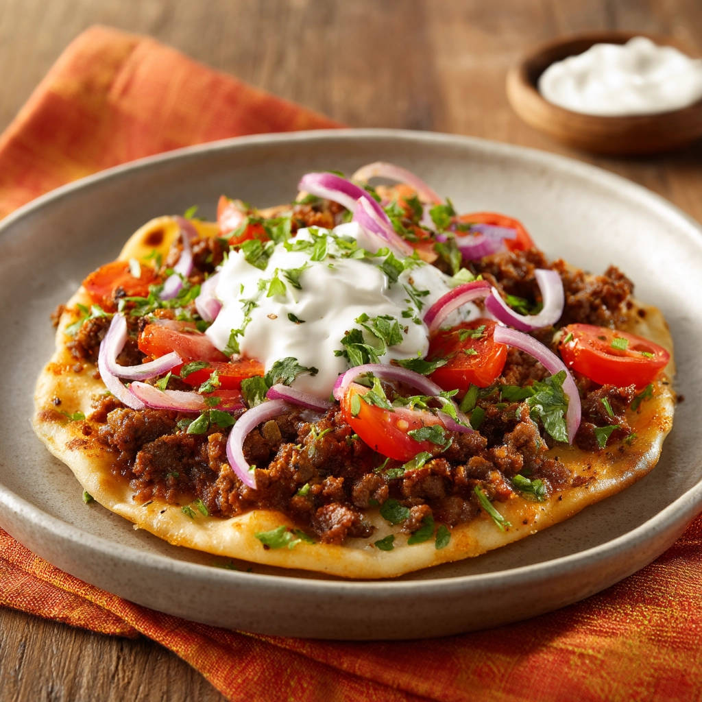 Make Savory Spiced Meat Flatbread that’s incredibly juicy! Our secret trick prevents dry ground beef for a flavorful, easy meal on naan or pita.